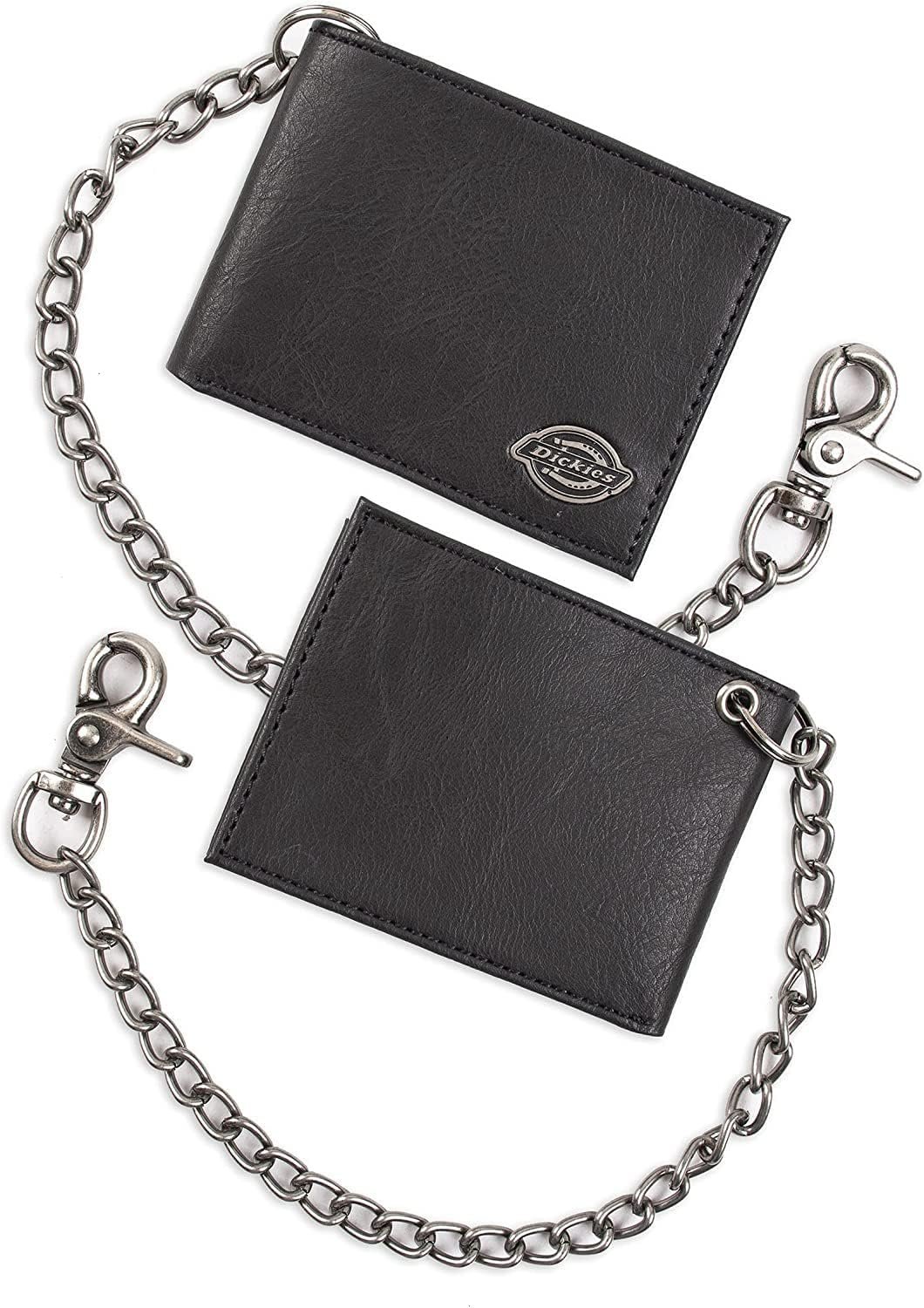Upgrade your daily essentials with the Dickies Men's RFID Everyday Leather Bifold Chain Wallet. Crafted by the trusted Dickies brand, this stylish black wallet features RFID protection to keep your personal information secure, along with a durable leather construction and a secure chain attachment. It's the perfect blend of security, durability, and classic style—ideal for anyone looking for a reliable everyday wallet. Don't miss out on this smart and practical choice for your everyday carry.