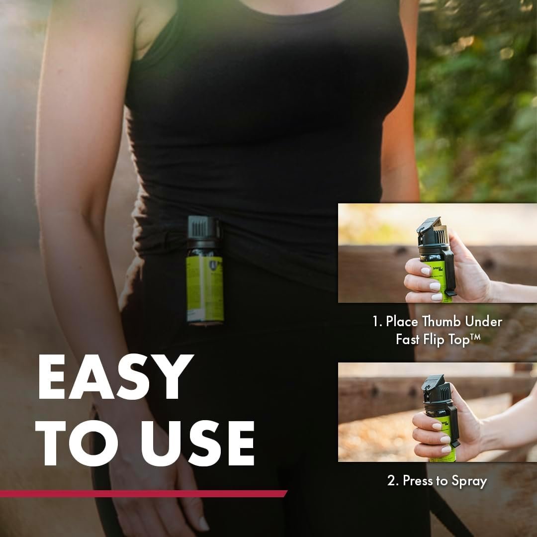 Compared with generic “animal repellent” cans, SABRE Protector is more purpose-built for quick carry and controlled bursts. The belt clip and flip-top safety are meaningful upgrades for people who actually plan to carry daily.