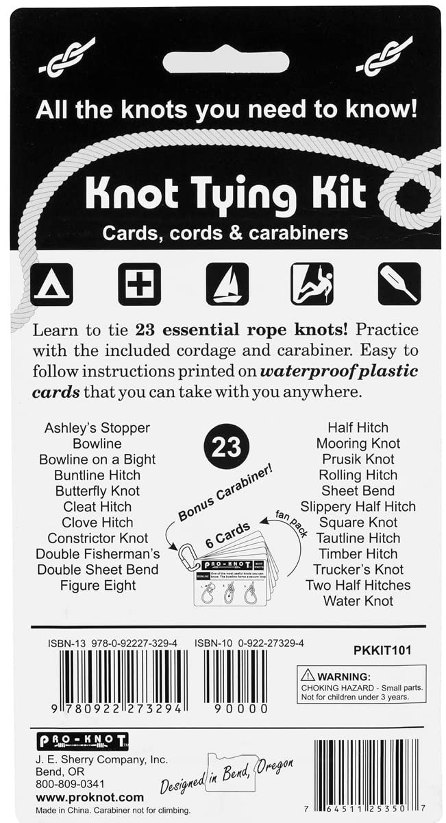 Master the art of knot tying effortlessly with the Knot Tying Kit by John E. Sherry. This practical kit includes the Pro-Knot Best Rope Knot Cards, two durable practice cords, and a handy carabiner, making it perfect for outdoor enthusiasts and beginners alike. With clear instructions and portable design, it's a must-have tool for camping, boating, or everyday use. Upgrade your skills and confidence with this versatile, easy-to-carry kit—an ideal addition to any adventure or emergency toolkit.